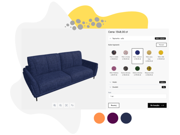 Zobacz możliwości konfiguratora w modelu abonamentowym na podstawie naszego DEMO. Zastosowanie tego narzędzia jest znacznie szersze: od mebli, osłon okiennych i wyposażenia wnętrz, po branżę upominkową, dekoracyjną, produkty reklamowe czy wyposażenie ogrodu.