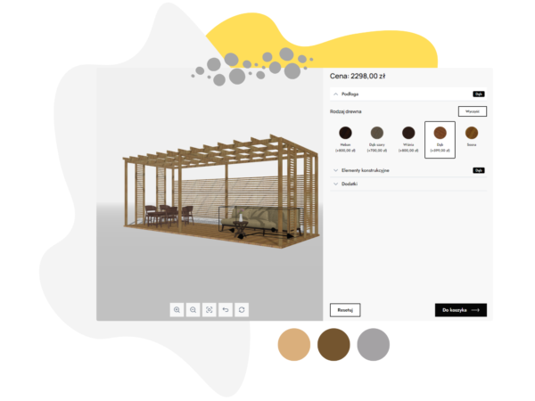 Użytkownik na bieżąco widzi efekty swoich wyborów – zarówno pod względem wyglądu, jak i aktualizowanej na bieżąco ceny. Po zakończeniu konfiguracji generowana jest kompletna specyfikacja i wycena, gotowa do przesłania lub realizacji.